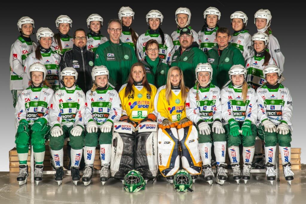 VSK Bandys damlag 2013/2014. Ulrika Fröberg tvåa från vänster på främre raden.