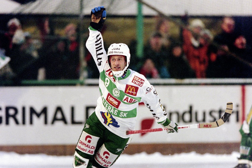 961226 Bandy. Allsvenskan, Norra, Västerås – Hammarby, 5-3: Hans Johansson, Västerås jublar efter mål.